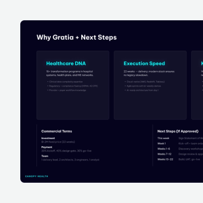 Hands-on, practical experience delivering work that's actionable and implementation-ready, not theoretical frameworks that sit on a shelf.